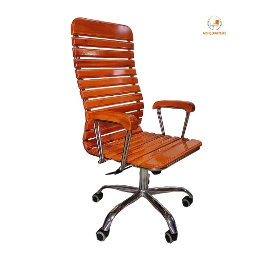 Elegant director chair crafted with mahogany wood, stainless steel frame, and smooth China reclining mechanism—perfect for executive-level comfort.