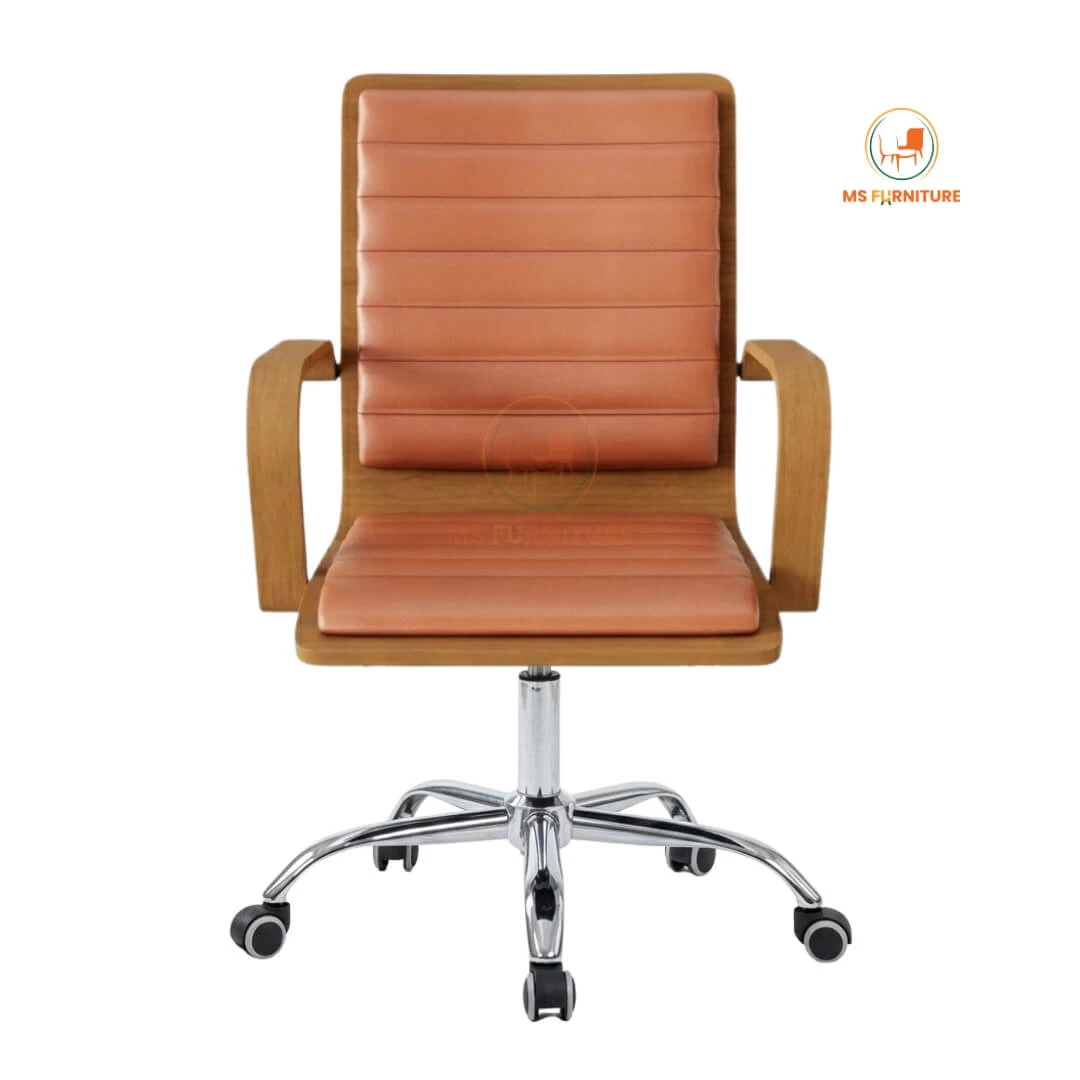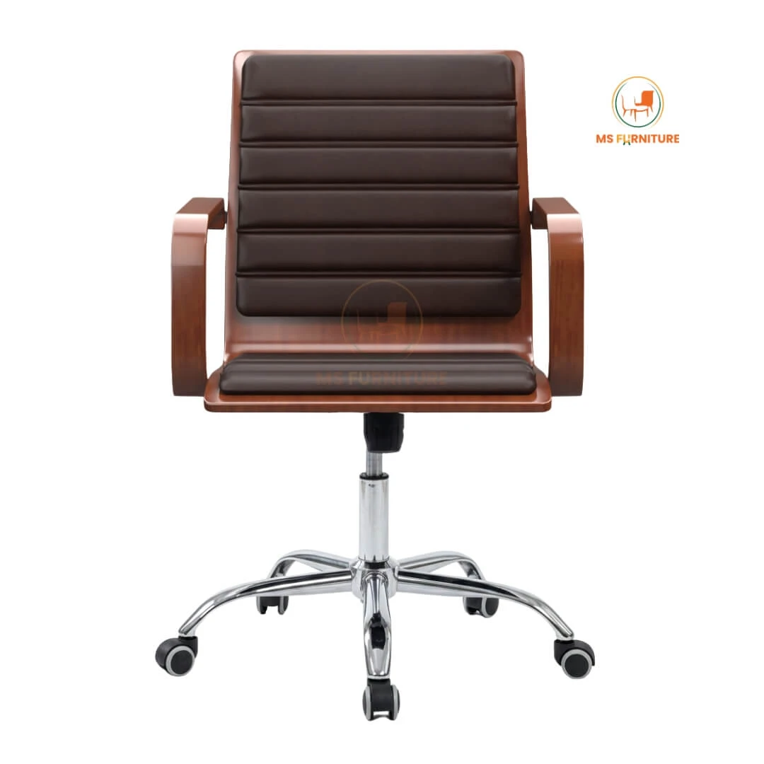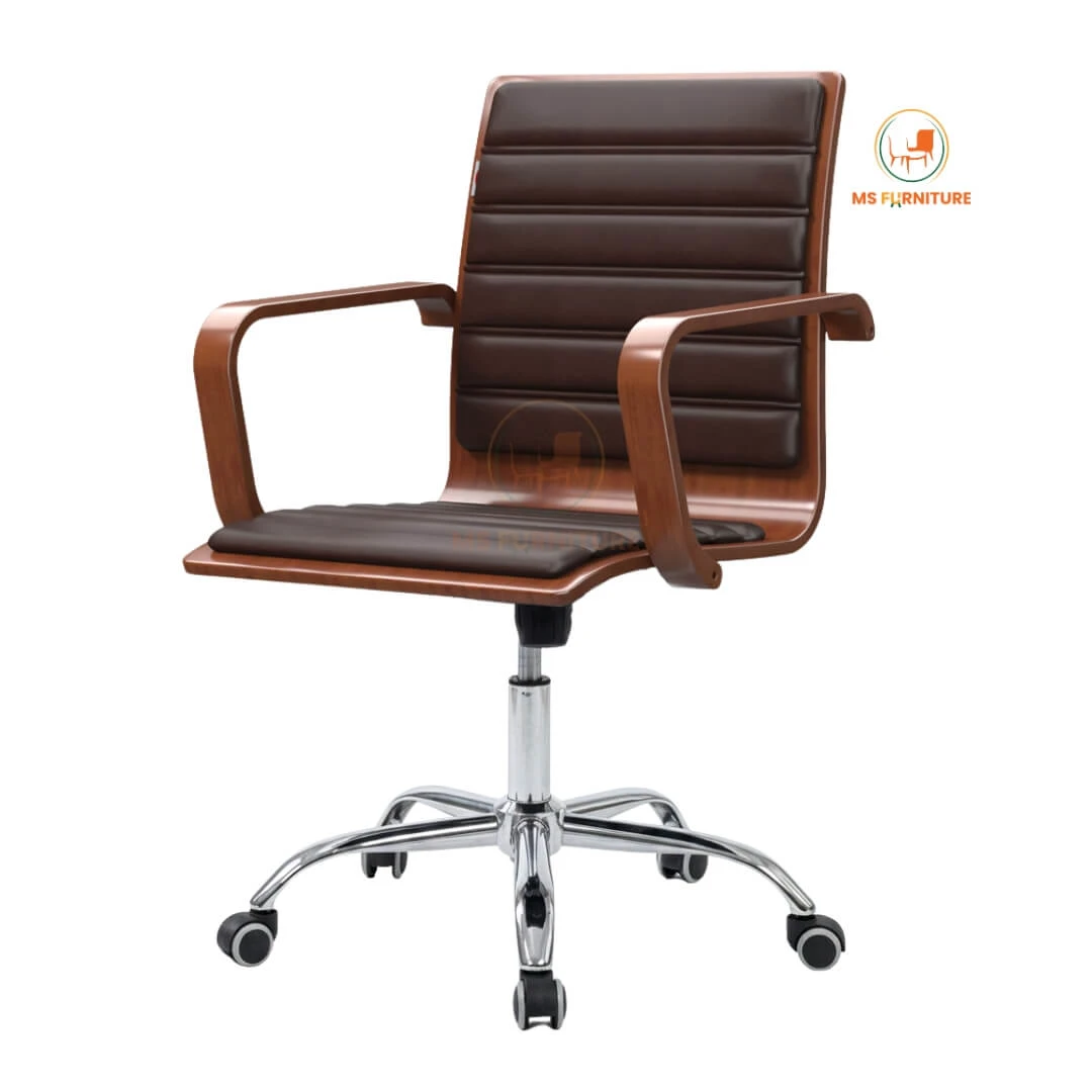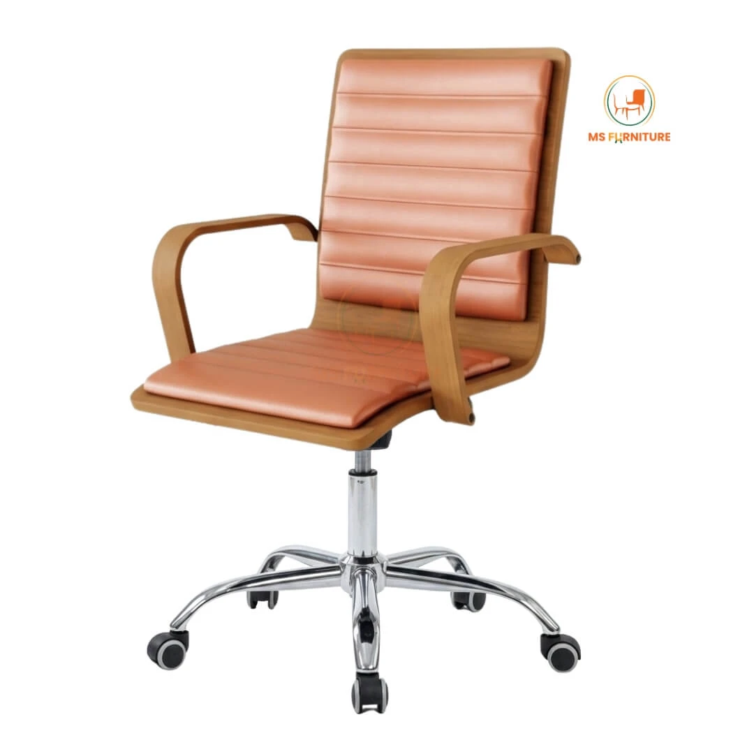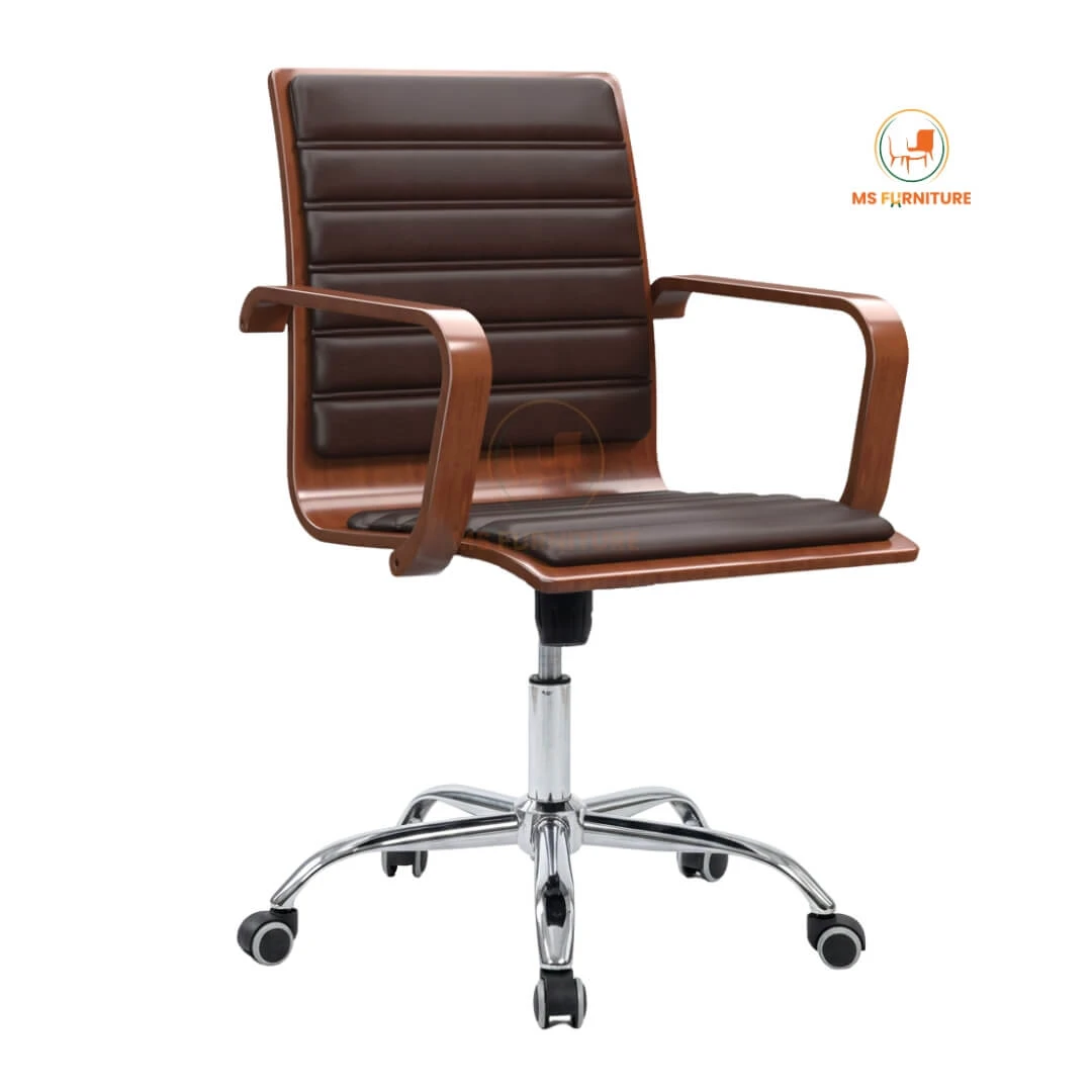 The MSF-201 Executive Revolving Chair is designed for the leader who values both aesthetics and efficiency. Featuring a striking mid-century modern silhouette, this chair pairs rich wooden textures with a high-shine chrome base to elevate any executive office or premium home workspace in Bangladesh.
