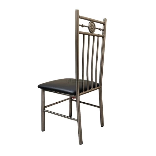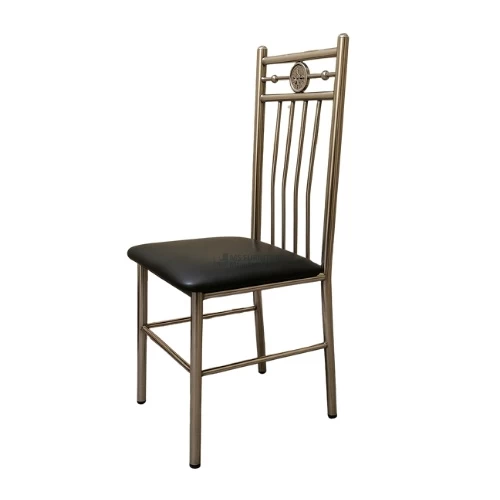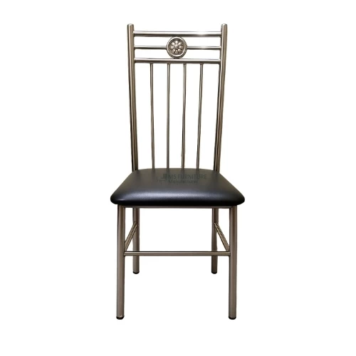 "Shop a stylish metal dining chair with durable chrome frame and cushioned black seat. Perfect blend of comfort and contemporary design for home or office use."