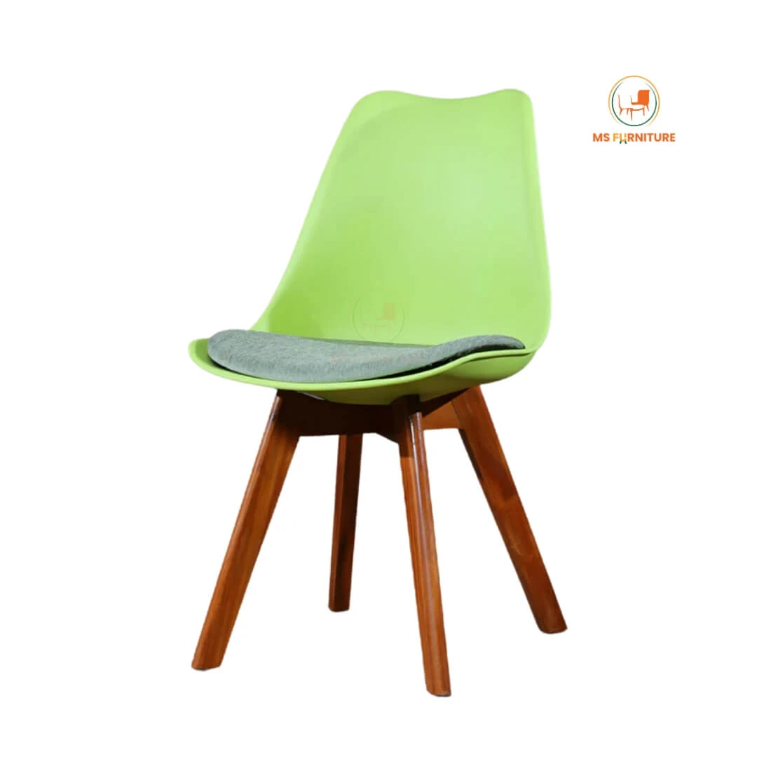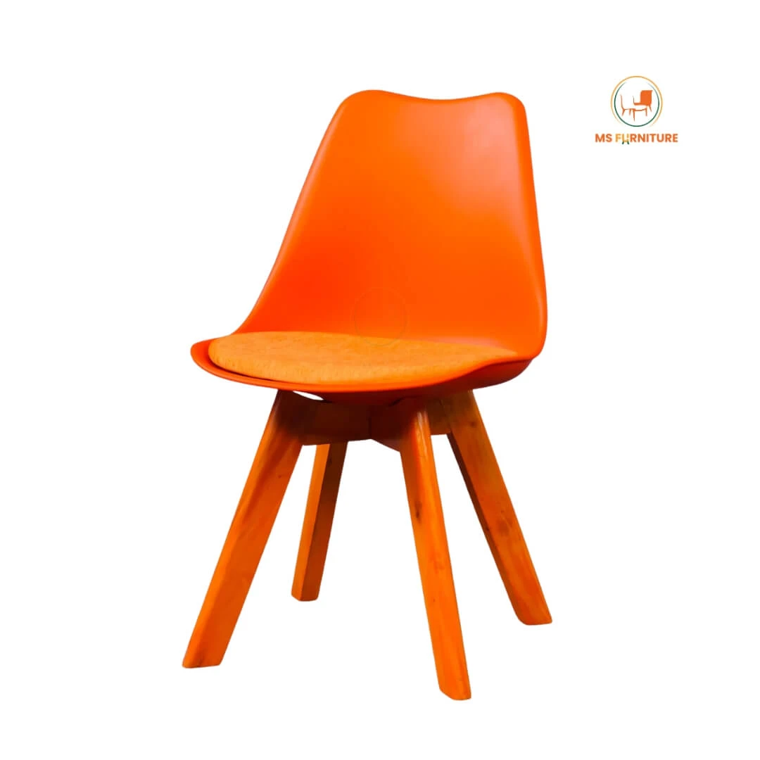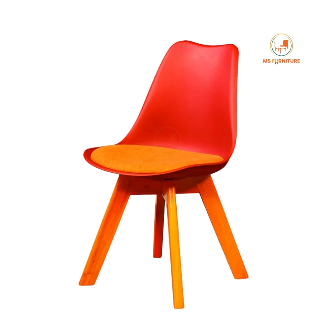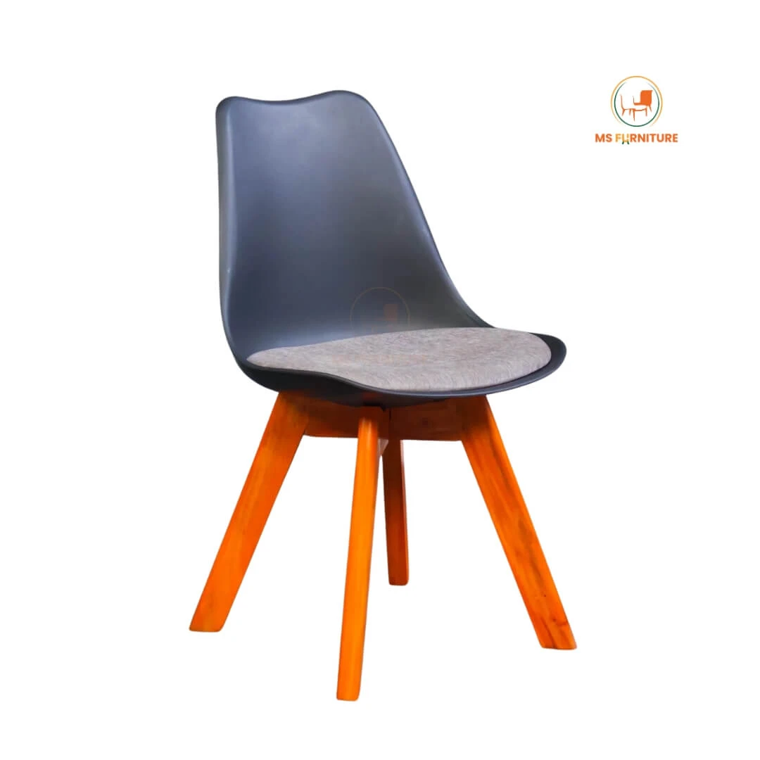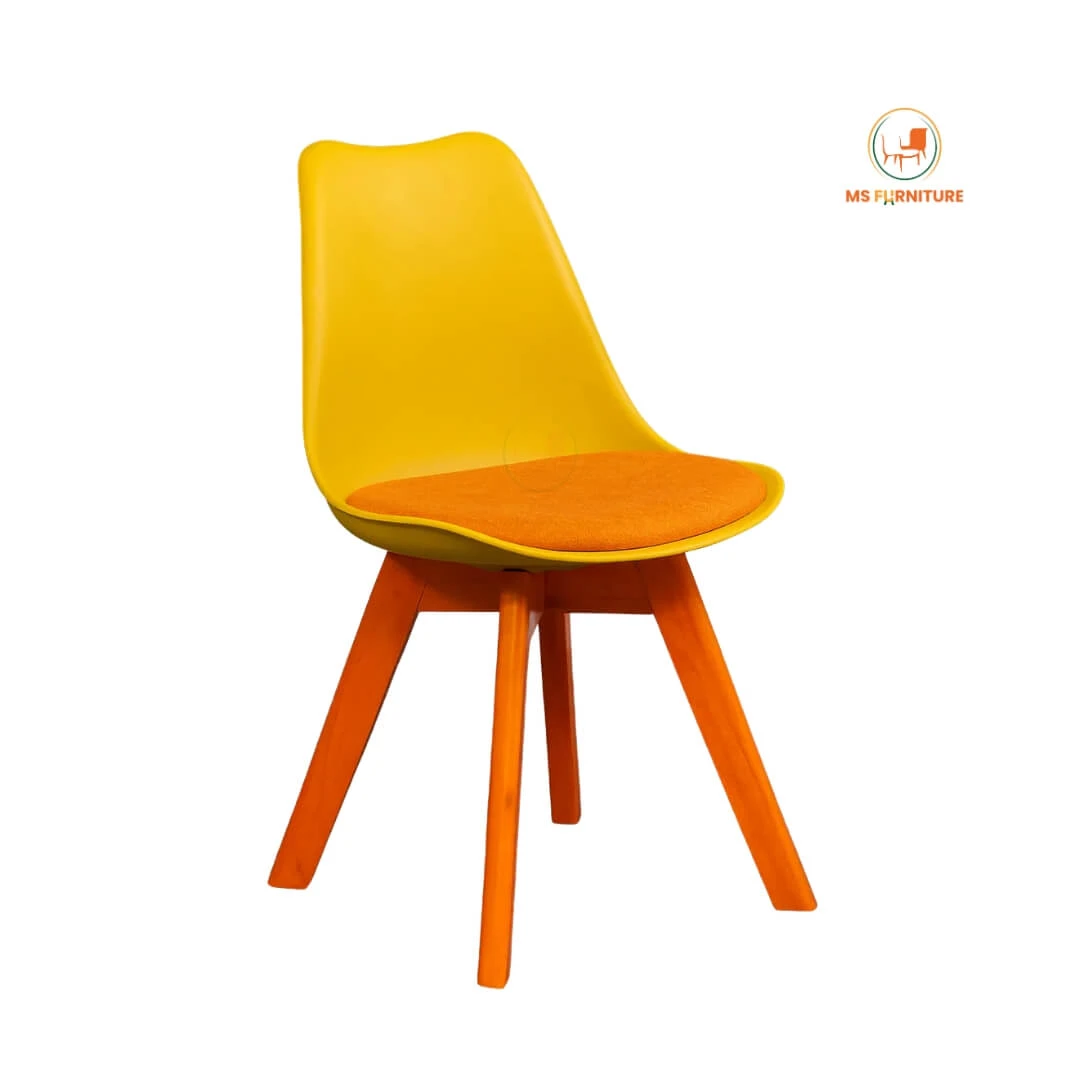 This tulip chair blends modern aesthetics with everyday comfort, creating a refined yet practical seating solution.Crafted from high-quality molded plastic, the chair remains lightweight yet durable for regular use. A soft fabric seat cushion enhances comfort, making it suitable for extended sitting.The wooden-finish legs introduce a warm, natural contrast to the modern shell, allowing the chair to complement a wide range of interior styles.