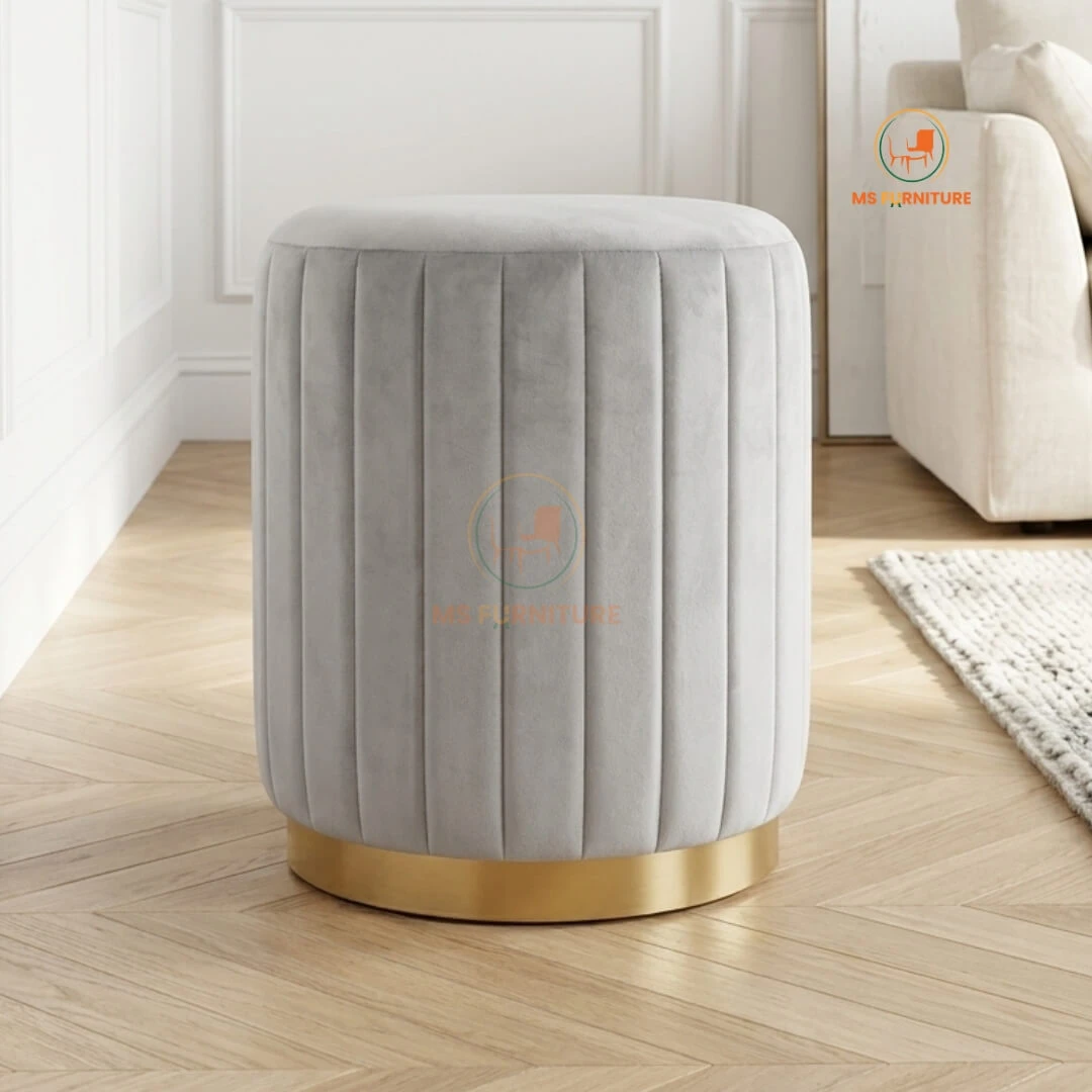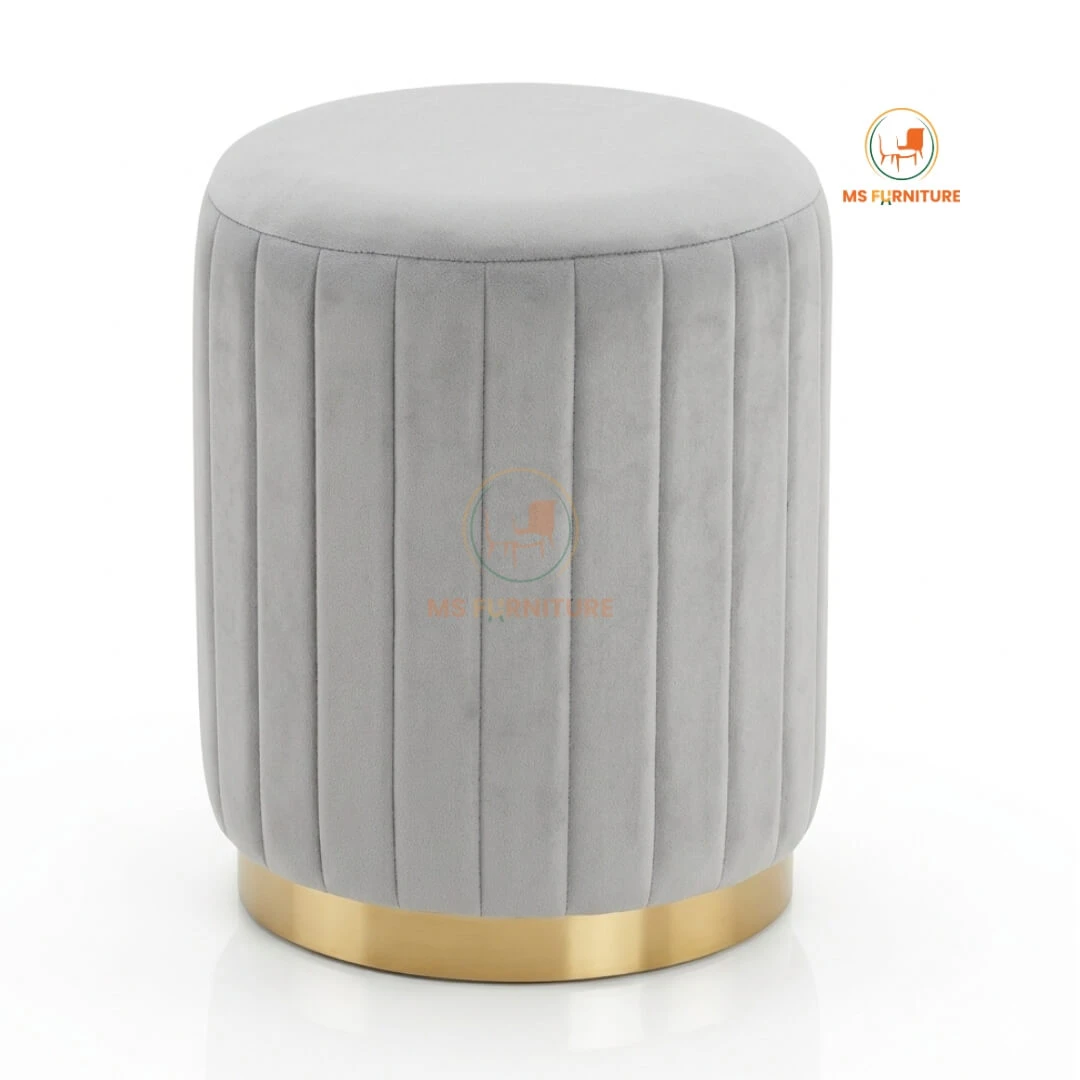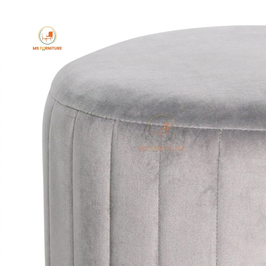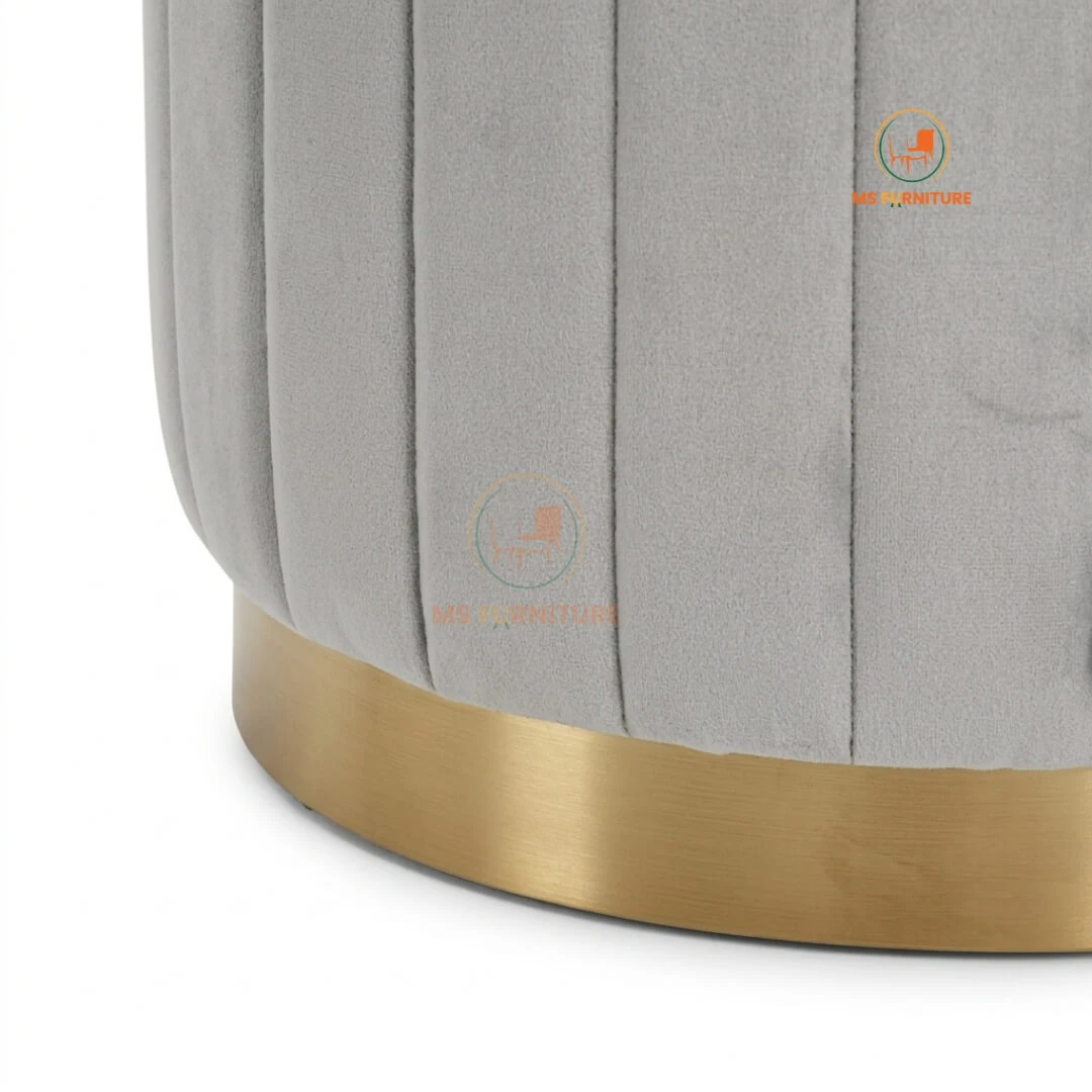 Elevate your home or office interior with this luxurious Round Stool. Featuring a sophisticated grey velvet upholstery with elegant vertical stitching, this stool offers both comfort and a modern aesthetic. The sturdy golden metallic base provides a touch of glamour and exceptional stability.