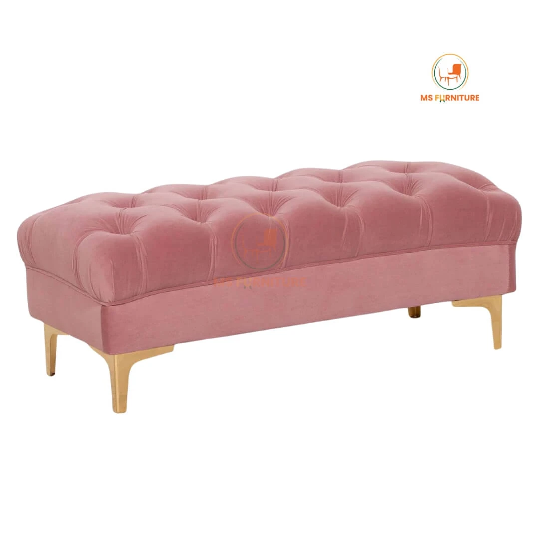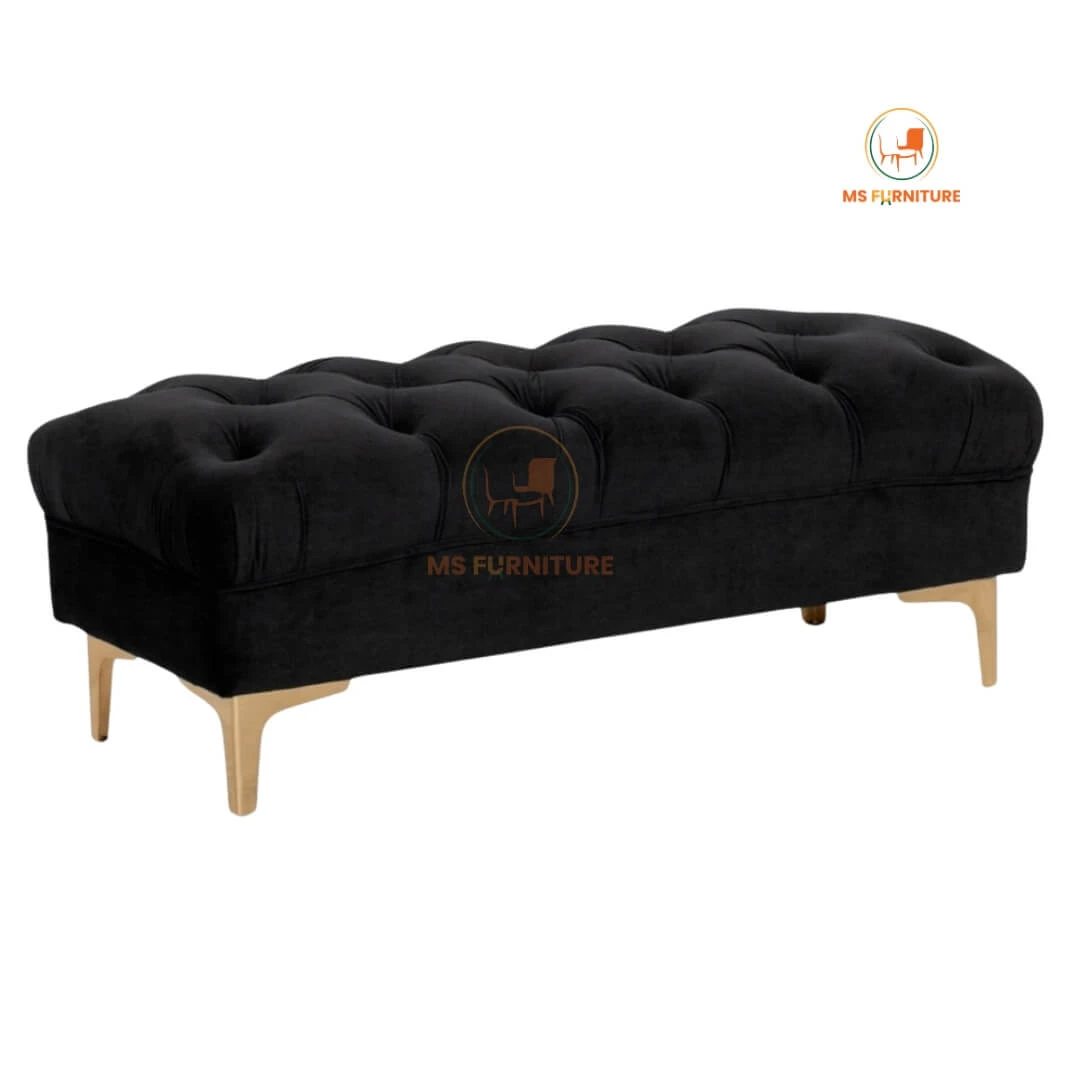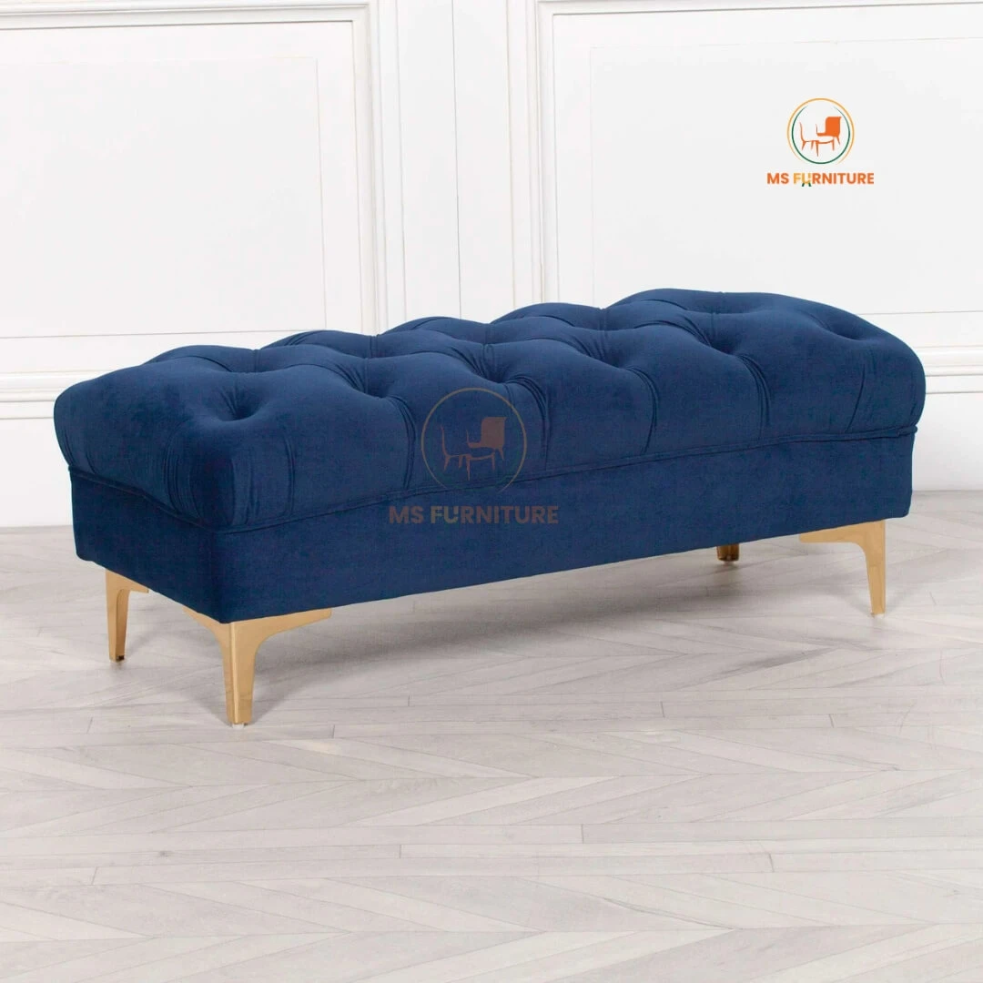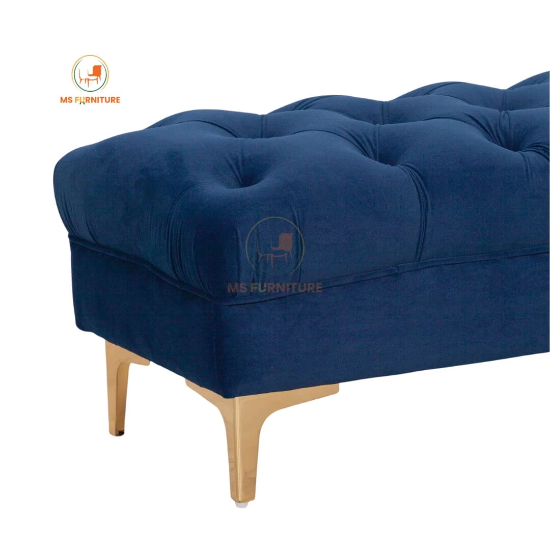 Add a touch of royal elegance to your space with this Royal Blue Velvet Bench Ottoman. Featuring classic deep button tufting and a luxurious soft-touch velvet finish, this bench is as comfortable as it is stylish. The sleek, tapered golden metallic legs offer a modern contrast, ensuring stability and a premium look.